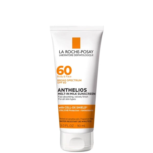 Oxybenzone and Octinoxate-free body and face sunscreen provides broad-spectrum SPF 60 protection. Non-greasy, fast-absorbing texture leaves skin hydrated and smooth with a velvety texture. Powerful antioxidant complex helps protect skin from free radicals caused by UV rays. Anthelios Melt-In Milk SPF 60 lotion is ideal for all skin types, even sensitive. This sunscreen for face and body is oil-free, fragrance-free, paraben-free, non-comedogenic.