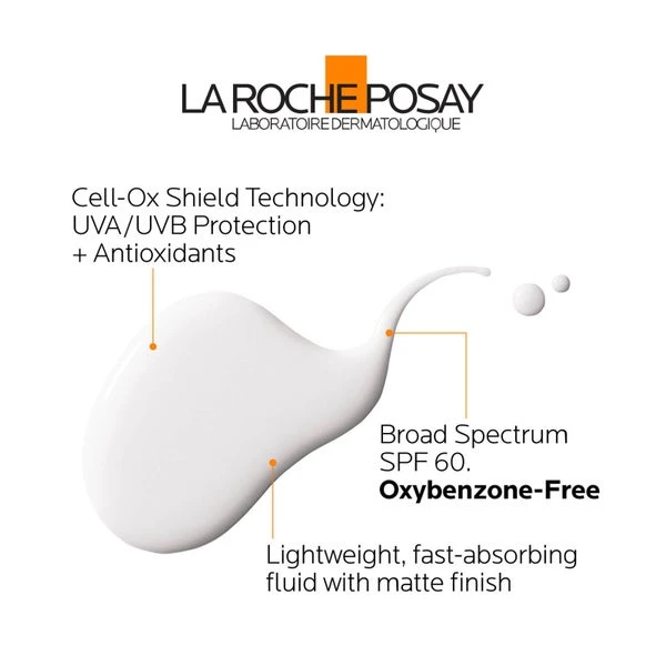 La Roche-Posay’s Anthelios Ultra Light Fluid Face Sunscreen Broad Spectrum SPF 60 provides broad-spectrum protection from the sun’s harmful rays that may contribute to skin damage and premature aging of the skin. Lightweight and fast-absorbing, this facial sunscreen provides a non-whitening, matte finish and is formulated with Cell-Ox Shield® Technology and antioxidants to help visibly reduce the appearance of sun damage.