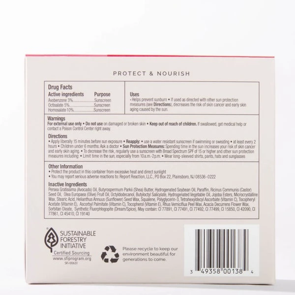 Inactive: Persea Gratissima (Avocado) Oil, Butyrospermum Parkii (Shea) Butter, Paraffin Wax, Hydrogenated Soybean Oil, Ricinus Communis (Castor) Seed Oil, Octyldodecanol, Olea Europaea (Olive) Fruit Oil, Jojoba Esters, Hydrogenated Vegetable Oil, Microcrystalline Wax, Stearic Acid, Helianthus Annuus (Sunflower) Seed Oil, Squalane, Acacia Decurrens Flowerwax, Polyglycerin-3, Rhus Verniciflua Peel Wax, Sorbitan Oleate, Tetrahexyldecyl Ascorbate, Tocopheryl Acetate,Ascorbyl Palmitate, Tocopherol. May Contain: Titanium Dioxide (Ci 77891), Iron Oxides (Ci 77491- Red), Iron Oxides(Ci 77492 – Yellow), Iron Oxides (Ci 77499 – Black) Ci 19140 – Yellow 5, Red 28 Lake (Ci 45410).