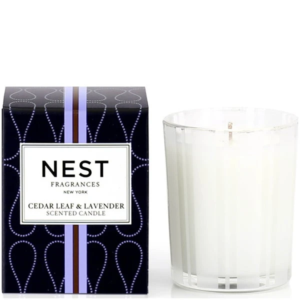 Infuse your home with a refreshing aroma using the NEST Fragrances Cedar Leaf and Lavender Votive Candle; a single wick candle that arrives in luxurious NEST Fragrances packaging. The simple white candle is presented in a minimal, clear glass tumbler, which is able to complement and enhance any room in the home.