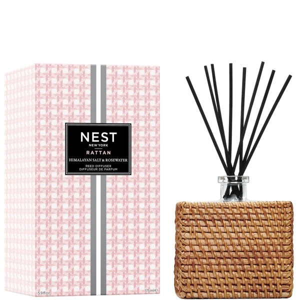 Weave wellness into your world with this exclusive Reed Diffuser fitted with a newly-designed rattan sleeve that fits any NEST New York Reed Diffuser. This chic accessory adds textured style to your home while a serene blend of rosewater, geranium, salted amber, and white woods is released slowly and evenly into the air for approximately 90 days, leaving you feeling comforted and relaxed.