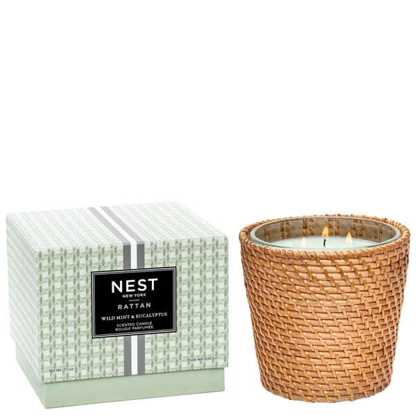 Weave wellness into your world with this exclusive 3-Wick Candle fitted with a newly-designed rattan sleeve that fits any NEST New York 3-Wick Candle. This chic accessory adds textured style to your home while an aromatic blend of wild mint, eucalyptus, basil, and Thai ginger leaves you feeling focused, recharged, and stress-free.