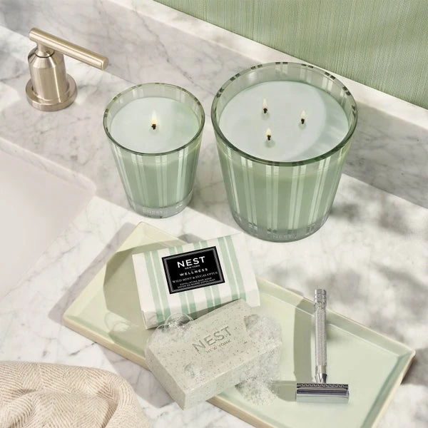 Scent your sanctuary with this 3-wick candle that blends the essence of wild mint and eucalyptus with basil and Thai ginger to clear your mind and awaken your senses.Â