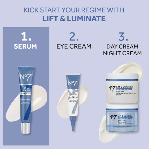 For Best Results: Use morning and evening, smooth onto your face and neck after cleansing, then moisturise with No7 Lift & Luminate Day or Night Cream.